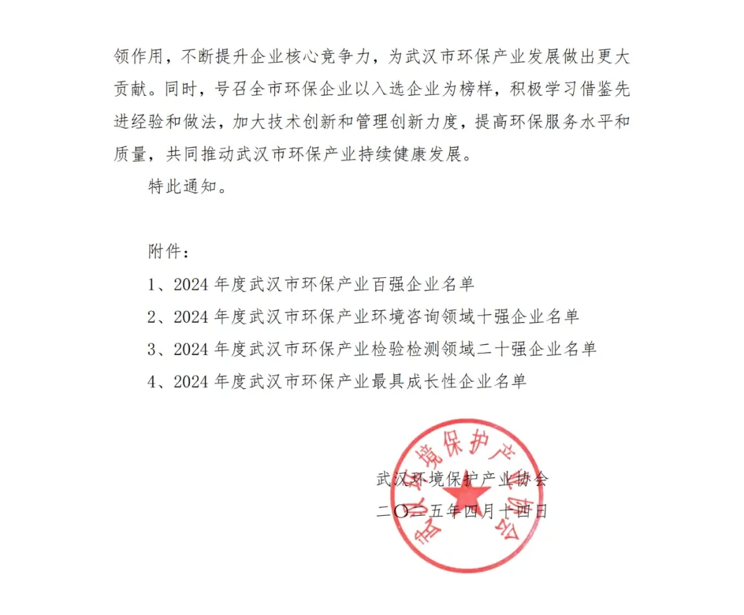 永业行入选2024武汉环保产业百强及环保咨询十强
